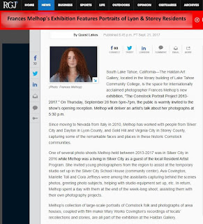 SHOW FEATURES PORTRAITS OF LYON AND STOREY RESIDENTS- Reno Gazette Journal also ran a feature on Melhop's Tahoe exhibition. Read it here: